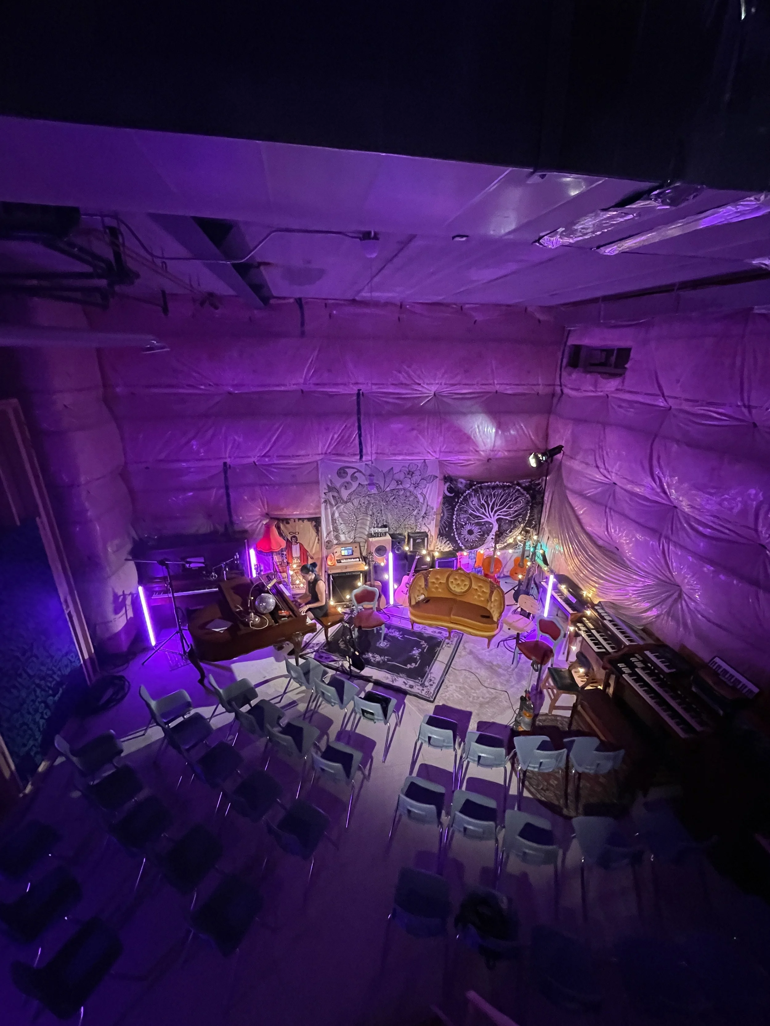 The studio is custom built, designed and constructed by Marc Koecher. Tailored to accommodate a creative and high-fidelity workflow. The control room and monitoring system follow a balanced non-environment design to allow for a clear, accurate, and detailed critical listening room. Housing many custom pieces of equipment built to his particular sonic preferences. From all-tube EQs and Limiters, spanning a variety of preamp topologies, to discrete solid-state dynamics and tonal shaping processors. The recording chain begins with a variety of dynamic, ribbon, and condenser microphones. Again including many custom units with hand-built ribbon motors and condenser capsules. Recording mediums include high-resolution digital capture as well as analog multitrack and master tape machines. The control room supports a large tracking space that houses a collection of his instruments and amplifiers. From pianos (baby grand and treated upright), a Hammon organ and Leslie, analogsynthesizers, various reed organs, and many others from Wurlitzer, Fender, Gibson, Farfisa,Hohner, etc.